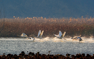 天鹅冬栖玉皇阁湿地 石铜钢/摄 |