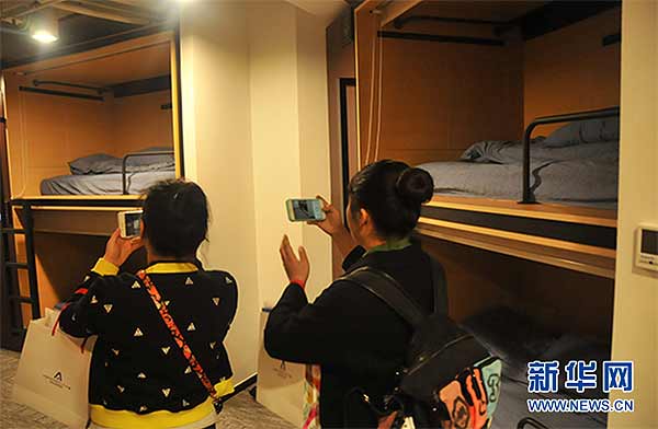 作为一家“双创”企业,白山云科技以新颖时尚的公司空间打造受到了不少年轻人的喜爱。图为公司为员工午休打造的“胶囊公寓”。新华网 张朝华摄