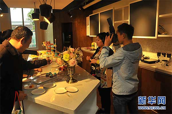 图为与白山云科技公司办公平面融为一体的时尚吧台。新华网 张朝华摄