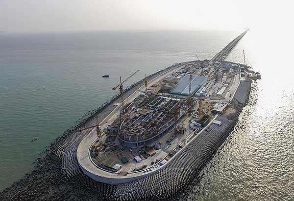 这是拥有世界最长的海底隧道的大桥,隧道全长6.7公里,全部采用沉箱预制搭建。