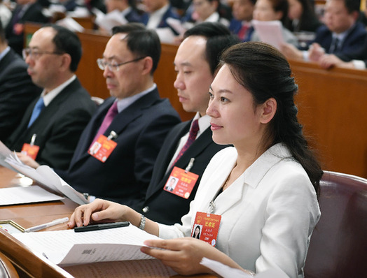 3月8日,王欣会(右一)在十三届全国人大二次会议第二次全体会议上。