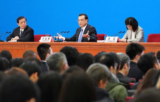 3月15日,十三届全国人大二次会议在北京人民大会堂举行记者会,国务院总理李克强应大会发言人张业遂的邀请会见中外记者,并回答记者提问。