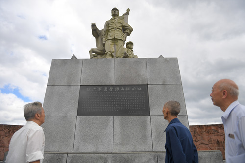 黄维忠(右一)等在湖南郴州市桂东县寨前镇红六军团誓师西征旧址参观(6月13日摄)。