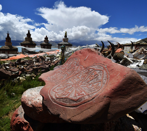 上图为当惹雍错旁的象雄佛塔及经石。