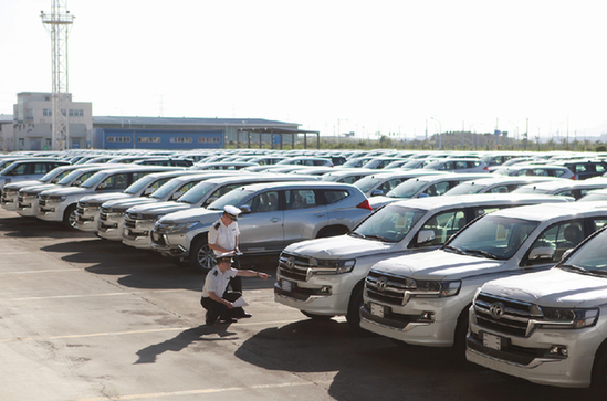 宁波海关关员对进口汽车进行查验 张佐 摄