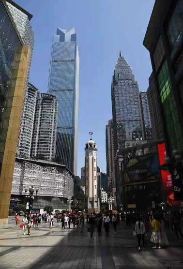 解放碑中央商务区地处西部,但是随着西部大开发战略、“一带一路”倡议、长江经济带建设的实施,中国西部地区逐渐被越来越多的外资看好,这里也成了重庆对外开放的窗口。