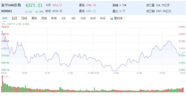10日,新华500指数(989001)收盘下跌0.05%,报4377.21点,全天振幅0.79%。