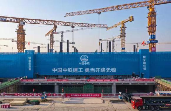 京雄城际铁路雄安站施工现场。中铁建工集团供图