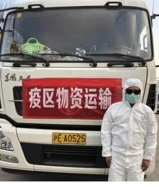 ▲ 运输车上挂有明显的“疫区物资运输”标识
