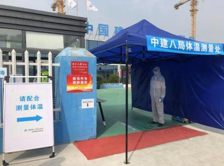 该建筑工地严格实施全封闭管理,只开通一个进出口,施工现场和生活区24小时单独设岗,并落实至少2人一班、管理人员带班的措施。在施工现场门禁准入区前设置了脚底消毒设施、安装了热成像测温区,建立了进出场登记和体温检测制度,确保入场人员体温正常且有迹可循,手机轨迹查询一目了然。另外,场内各类宣传教育展牌,时时处处科普着防疫知识、警示着防控要求,把疫情防控交底覆盖到全部人员、全部点位。