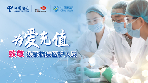 2月28日,中国电信、中国移动、中国联通三家中央电信企业共同推出“为爱充值,致敬援鄂抗疫医护人员”话费赠送暖心服务活动,为支援湖北疫情防控的一线医护人员每人赠送话费1000元,累计将投入超过5000万元。