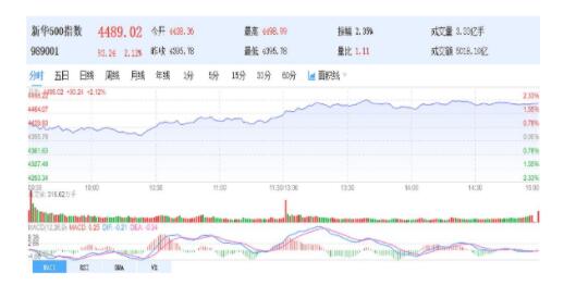 5日,新华500指数(989001)收盘上涨2.12%,报4489.02点,全天振幅2.35%。