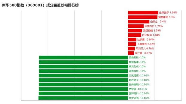 3月16日,新华500指数(989001)收盘报3977.43点,跌4.48%,成交额3998.33亿元;鱼跃医疗,复星医药,白云山 领涨。