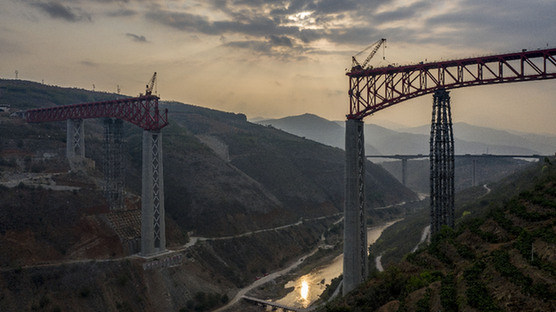 4月7日,中老铁路全线重点控制性工程——元江特大桥迎来关键节点,主桥钢桁梁正式“迈”过154米高的主桥墩,这是世界同类铁路桥梁第一高墩。元江特大桥位于云南省元江县,采用上承式连续钢桁梁跨越峡谷,全长832.2米,建成后,其249米的主跨也将刷新国内同类桥梁跨度纪录。