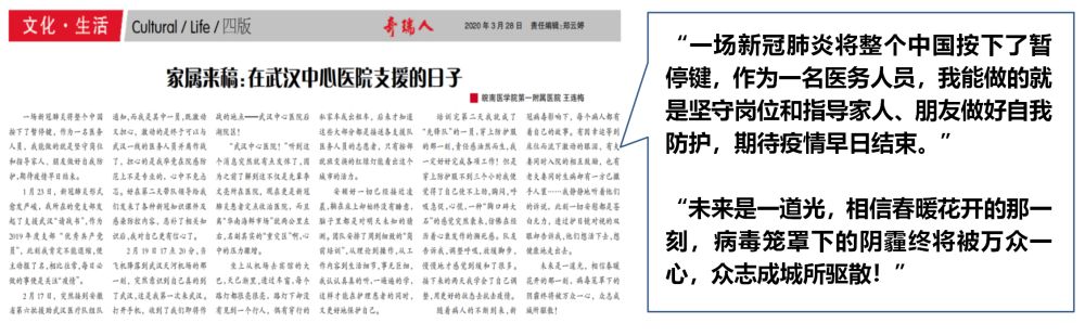 在支援武汉中心医院的日子里,王连梅作为奇瑞家属,写下“抗疫日记”被刊载在奇瑞集团内刊报纸《奇瑞人》上,成为打动许多奇瑞人的前方“家书”。正如人们说的那样,英雄和勇士,并不是面对危险时毫无畏惧,而是即使内心带着恐惧,也依然坚定信念前行。