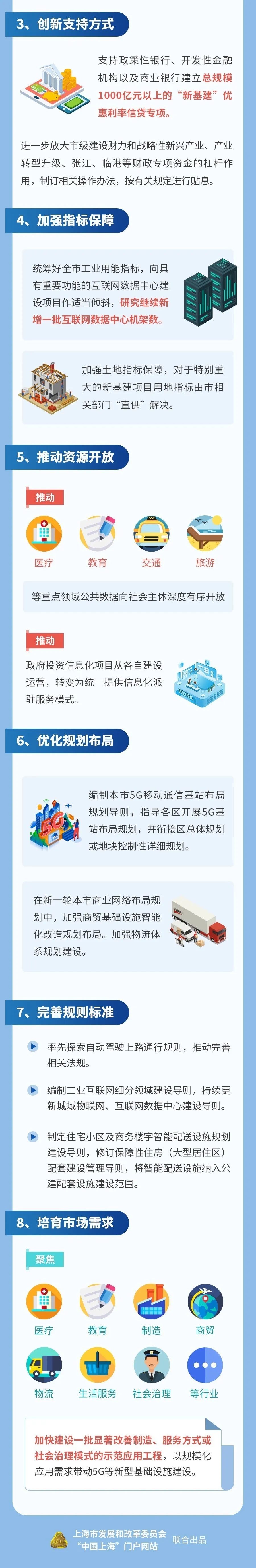 下一步,上海将全力落实好“新基建”35条,抢抓新型基础设施建设为产业复苏升级带来的重要机遇,高水平推进5G等“新网络”建设,持续保持“新设施”国际竞争力,加快建设人工智能等“新平台”,完善社会治理和民生服务“新终端”布局,着力创造新供给、激发新需求、培育新动能,为上海加快构建现代化产业体系厚植新根基,打造经济高质量发展新引擎。