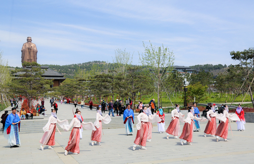 游客参加尼山圣境古装游园活动