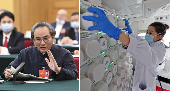 左图:全国人大代表唐农建议,充分发挥中医药和民族医药作用,服务新冠疫情防控。