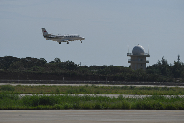 6月1日,校验飞机低空掠过海口美兰国际机场二期跑道,以开展飞行校验工作。