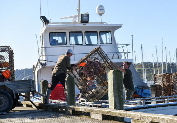 6月9日,人们在新西兰首都惠灵顿准备出海捕捞用的虾笼和绳索。