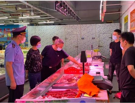 为全面贯彻上海市新型冠状病毒肺炎疫情防控工作领导小组办公室《关于印发〈农贸市场疫情防控实施方案〉的通知》和《闵行区重点场所(农贸市场、夜市等)新冠肺炎疫情防控工作方案》要求,进一步完善和落实“外防输入、内防反弹”各项措施,认真做好农贸市场新冠肺炎疫情防控工作,6月29日,区经委、区市场监管局、区爱卫办组成联合检查小组,由区经委副主任彭哲颖带队先后对莘庄绿梅市场、莘庄莘裕市场、颛桥伟都市场和梅陇陇南肉类批发市场防疫情况开展了现场检查。