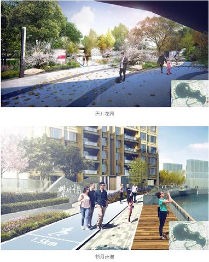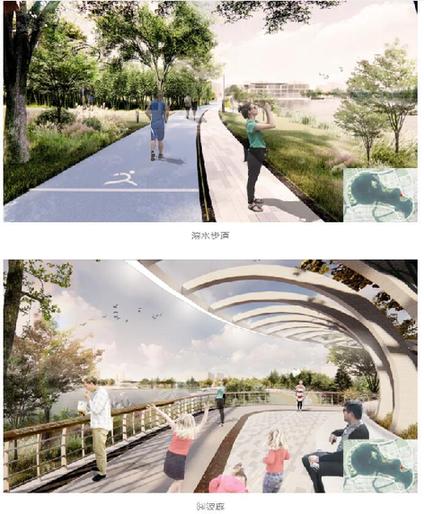 结合每一个主题区段融入各具特色的景观设计元素,有花阶坡道、观景平台、亲水步道、悦动舞台、景石雕塑、临水驿站等等。赛艇、皮划艇、龙舟、游艇等水上体育运动项目也精彩纷呈,多元化的功能满足从孩子到老人,居民到研发人员,创业者到大学生的各种休闲娱乐需求,这把“钥匙”必将开启紫竹的健康新生活。