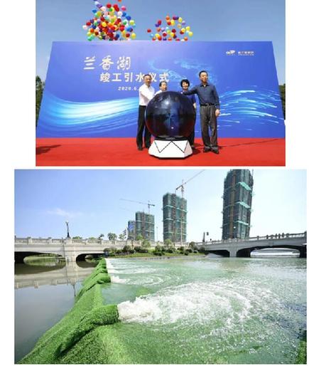 6月30日上午,上海交通大学校长林忠钦,华东师范大学党委书记梅兵,闵行区副区长汪向阳,紫竹高新区董事长兼总经理沈雯等领导嘉宾启动引水按钮,在礼炮与乐曲声中,在与会嘉宾的见证下,滔滔黄浦江水引入兰香湖。