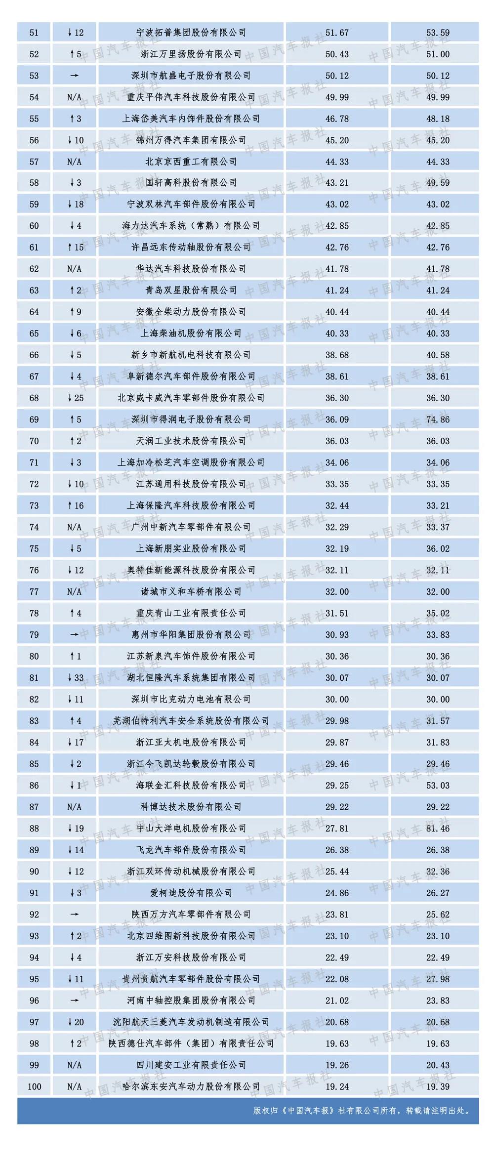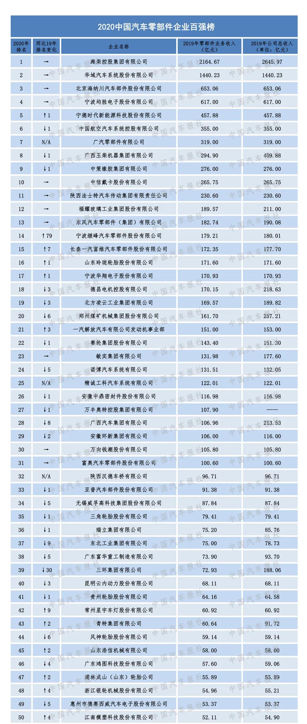“2020年‘双百强’榜单清晰、全面地展示当前全球汽车零部件产业的格局与趋势,看清国际领先企业的发展趋势和方向,清楚中国汽车零部件企业在全球所处的地位和成绩,找差距,补短板。”中国能源汽车传播集团党委副书记、副董事长、总经理,《中国汽车报》社社长辛宁说。