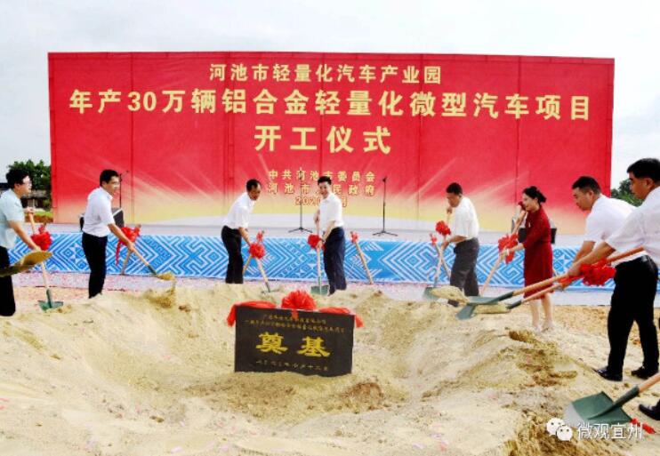 近日,年产30万辆铝合金轻量化微型汽车项目开工仪式在宜州区洛东工业集中区举行。