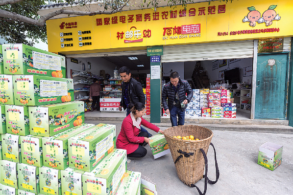 “邮乐购”站点已成为村民家门口的市场。图为村民在石棉县永和乡“邮乐购”站点交寄黄果柑快递。