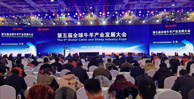 12月11日至12日,“第五届全球牛羊产业发展大会暨2020全球牛羊产业博览会”在辽宁沈阳举行。图为开幕式现场。