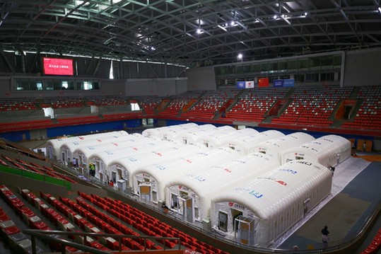 15个气膜舱搭建而成的广州“火眼”,每日最高可检测150万人份的核酸样本。