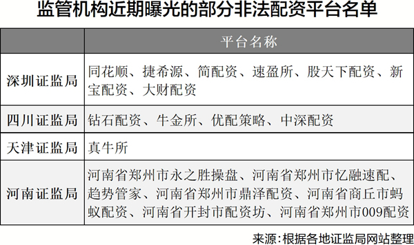 多地证监局均表示,“场外配资”机构不具备经营证券期货业务资质,不能从事融资融券业务,并提醒广大投资者,一定要通过合法途径参与股票期货交易,自觉远离和抵制场外配资违法活动。