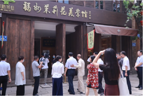 7月30日上午,教育部副部长、中国联合国教科文组织全国委员会主任、第44届世界遗产大会主席田学军在福州市委副书记林飞、福州市人民政府副市长李春等领导带领下参观上下杭文化街区,经过闽榕茶业·福州茉莉花美学馆,被阵阵茉莉飘香吸引,进馆参观,闽榕茶业董事长王德星全程陪同参观,并做深刻解说。