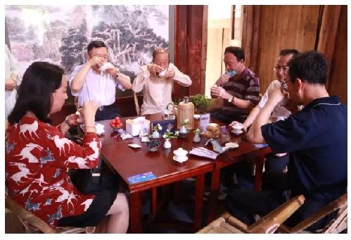 参观结束, 王德星现场邀请一行领导品鉴福州茉莉花茶,福州茉莉花茶最显著的特点就是“闻香不见花。独特冰糖甜”,王德星向领导们介绍:“要想做一杯上等的茉莉花茶,茶底和茉莉鲜花一定要讲究,优质的茶底需要充分吸收茉莉花的香气。但茉莉花只有在伏天的烈日下,它蕴含的芬芳才能凝聚到顶峰。而制作顶级的“九窨茉莉花茶”,只能从“伏花”中选取品种珍贵、产量稀少的长乐单瓣茉莉花。离开枝头的茉莉花活性依然旺盛,但这活性每分每秒都在流失,每当采完花蕾之后,接下来的工艺步骤都要精确到分钟来计算”。一杯看似普普通通的茶水,凝结了劳动人民无上的智慧,千年传承的茉莉花制茶工艺,静默且伟大!
