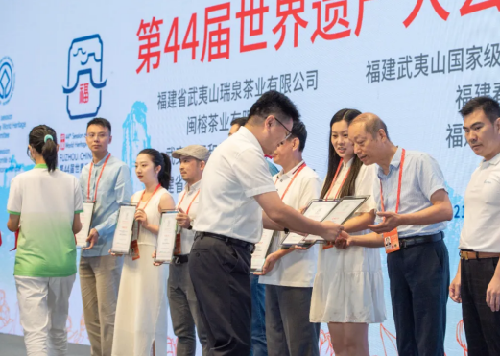 7月31日世遗大会闭幕式上,闽榕茶业董事长王德星接过组委会授予的接待用茶赞助企业奖牌,世遗大会结束,但是企业使命没有结束,授牌仪式是使命的交接。