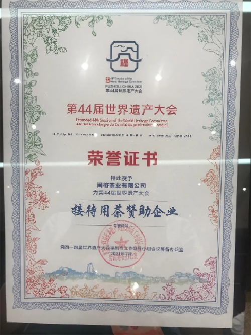 本次世遗大会,闽榕茶业有限公司有幸作为接待用茶赞助企业,以其“闻香不见花,独特冰糖甜”的福州茉莉花茶接待世界各地的来宾 。