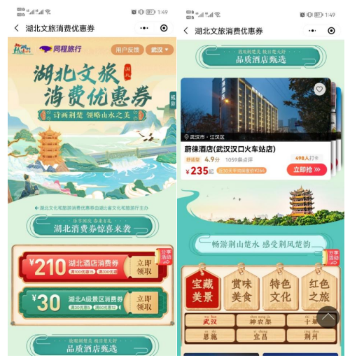 湖北省文旅消费券的发放,既可让全民共享文旅发展成果,也能强力拉动文旅消费。受疫情常态防控的影响,众多游客出行需求受到积压,急需多渠道、多产品释放文旅消费潜力,激发消费热情。此次湖北省文化和旅游厅推出文旅惠民消费券,是以区域内文旅经济产业协同发展为目标,以财政资金补贴文化和旅游消费为引导,以同程旅行OTA平台为支持,汇聚全省力量,组成优惠力度大、持续时间长、涉及范围广的惠民消费券活动。湖北省打通线上线下一体化,为企业提供平台,为游客提供安心,真正让广大消费者得到实惠,让文旅企业受益。