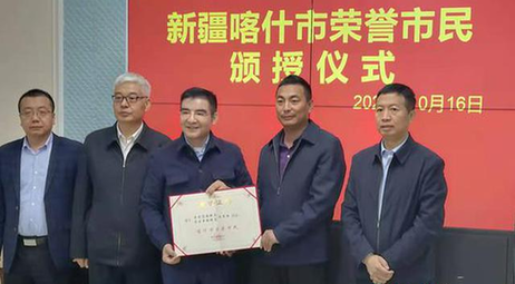 16日,黄埔再生资源利用有限公司党委书记、董事长陈光标经喀什市委、市政府研究被光荣授予新疆喀什市荣誉市民。据悉,这是陈光标获得的全国县市第100位荣誉市民。