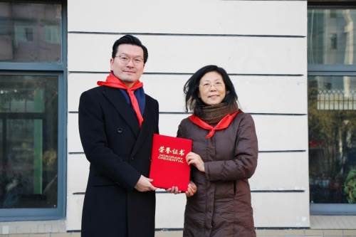 图:秦淮区教育局二级调研员臧勤为中传华夏颁发捐赠证书