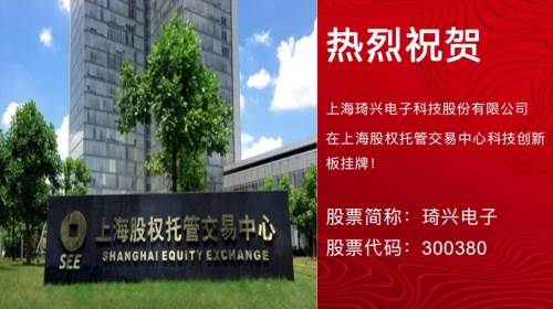 上海琦兴电子科技股份有限公司在上海股权托管交易中心科技创新板成功挂牌。股票简称:琦兴电子;股票代码:300380。