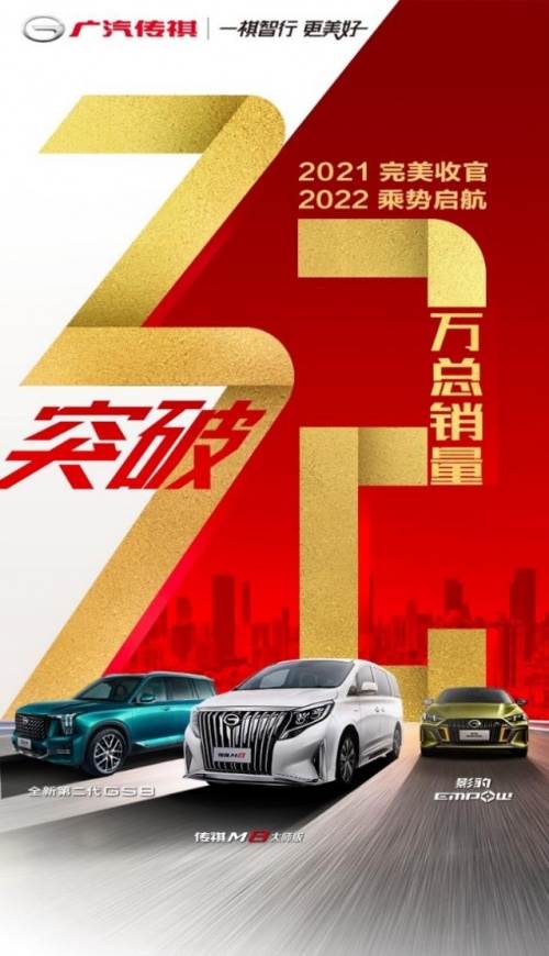 2022年如期而至,回顾2021年,既是十四五规划的开局之年,也是广汽传祺品牌焕新元年。在全新品牌口号“一祺智行 更美好”的引领下,广汽传祺坚持以客户体验为中心,以“趣、质、亲”为核心价值驱动,通过一系列强有力的产品推进全车型矩阵焕新升级,2021年12月全系共计斩获销量32151辆,同比增长2.2%;全年销量超32万辆,同比增长10.3%,销量增速跑赢大盘,完美收官2021!