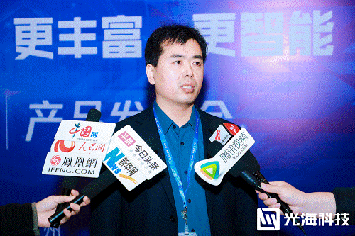 上午9:30分,光海科技董事长王振东先生、CEO兼创始人魏华超先生共同出席发布会现场,协同腾讯企业微信副总裁李致峰先生、海康威视相关领导、视源股份希沃相关领导及关注发布会的全国各地百来位合作商伙伴、线上企业微信直播间千名行业伙伴和媒体朋友一起,共同见证了新产品的发布。同时,王振东董事长也接受了媒体的采访。