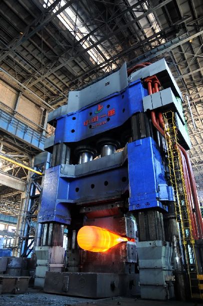 中国一重水压机锻造厂15000吨水压机正在锻造新材料支承辊。陈建军摄(中经视觉)