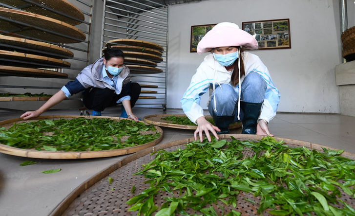 毛纳村茶农在手工茶坊内工作(4月10日摄)。新华社记者 杨冠宇 摄