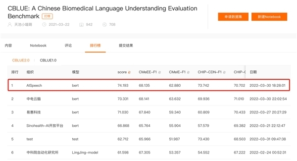 思必驰再次登顶中文医疗权威榜单CBLUE