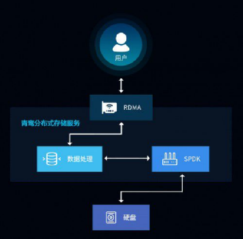 青鸾采用全旁路技术,针对NVMe SSD支持SPDK用户态IO栈,支持RDMA网络技术,充分释放硬件性能。