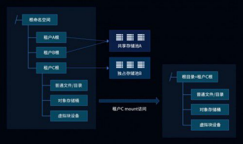 租户的数据能够以多种协议访问,不论是NAS存储、对象存储还是块存储,均共享一份底层数据,且受到一致的数据访问锁控制,在底层真正做到跨协议数据的一致性保护。