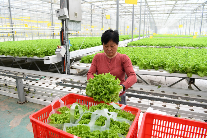 5月12日,工作人员在合肥市肥西县花岗镇现代农业示范区一蔬菜种植基地内收获蔬菜。 近年来,安徽省合肥市在推进乡村振兴过程中,着力打造各具特色的现代农业产业园,发展智慧农业,提高农业现代化水平,带动乡村产业发展和农民增收。 新华社发(马家贵 摄)