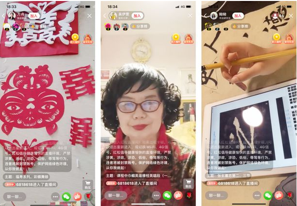 在红松的实时互动场景中,一名直播可以同时与两名学员连麦实时沟通,同时观看直播的用户可以进行文字、点赞、送礼等方式进行互动。相比于年轻群体,中老年会更加积极主动的进行交流,并且对于交流的仪式感也会更加注重,任何一次连麦、发言都会被“正式”对待。
